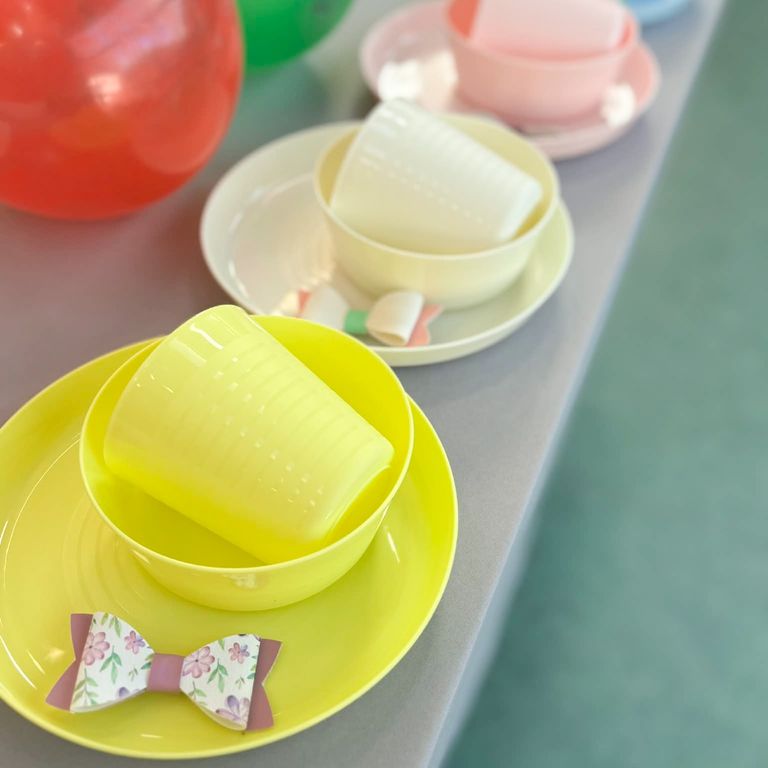 Get creative with our 32 reusable place settings in bright, fun colours—red, blue, green, and yellow—plus coordinating party pieces like bowls, cake stands, and serving plates.