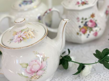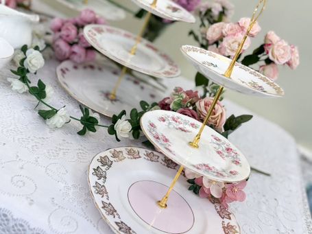 We have 50 matched vintage trios in a variety of colours, with a full range of other tea party china, including teapots, cake stands and serving plates. Our vintage china hire can be mixed and matched with our reusable party hire to provide for all of your guests.